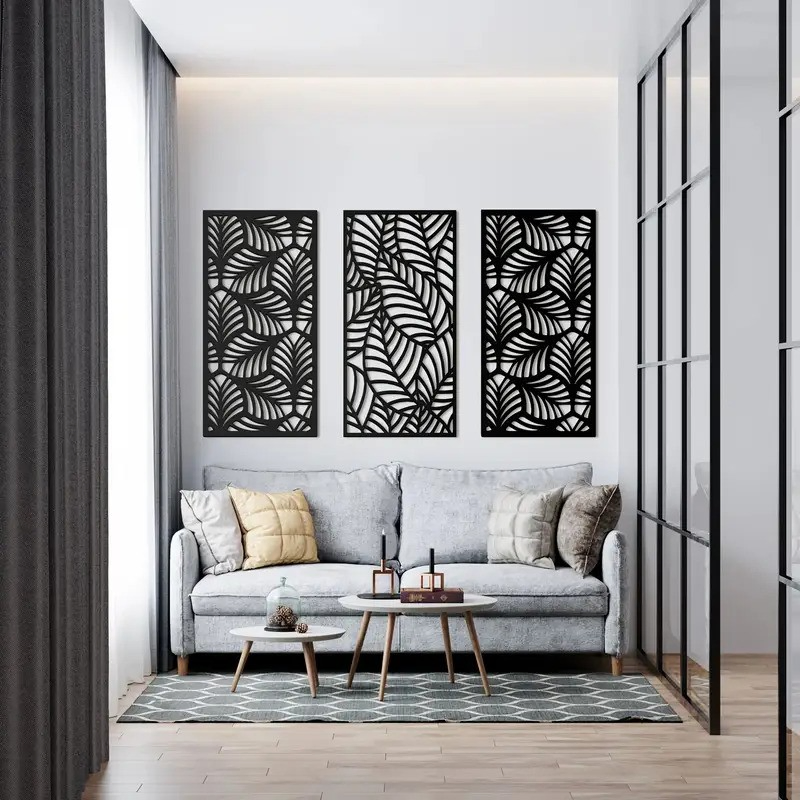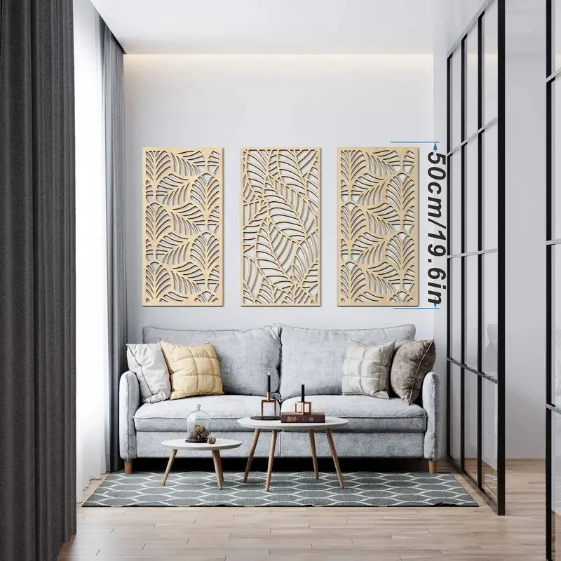 Boho Tropical Leaf Wooden Art Decor,3 Pcs Abstract Leaves Wall Art