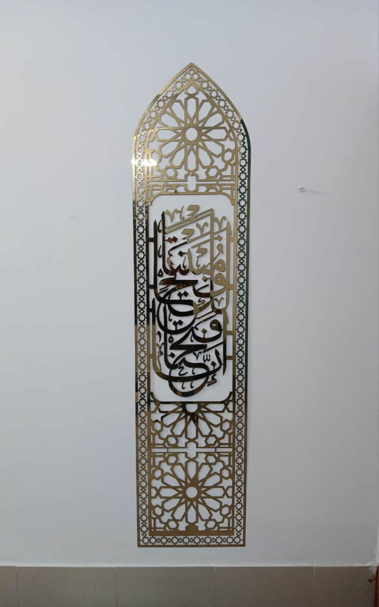 গোল্ডেন স্টেইনলেস স্টিলের আয়নার মতো হওয়ার কারণে চকচক করতে থাকে| আয়াতুল কুরসি ইসলামিক ওয়াল আর্ট আমাদের ইসলামিক স্টোরের অনন্য ডিজাইন।