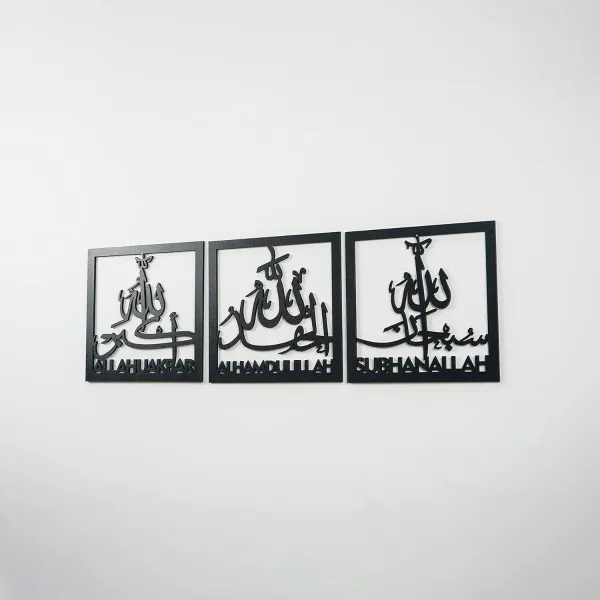 তিনটি পবিত্র শব্দ—সুবহানাল্লাহ, আলহামদুলিল্লাহ, আল্লাহু আকবার—প্রতিটি অক্ষরে প্রকাশ পায় সৌন্দর্য, কৃতজ্ঞতা ও আল্লাহর মহিমা। মসৃণ কাটিং ও সূক্ষ্ম ফিনিশিং আপনার দেয়ালকে দেবে এক অনন্য আকর্ষণ এবং শান্তির আবহ।